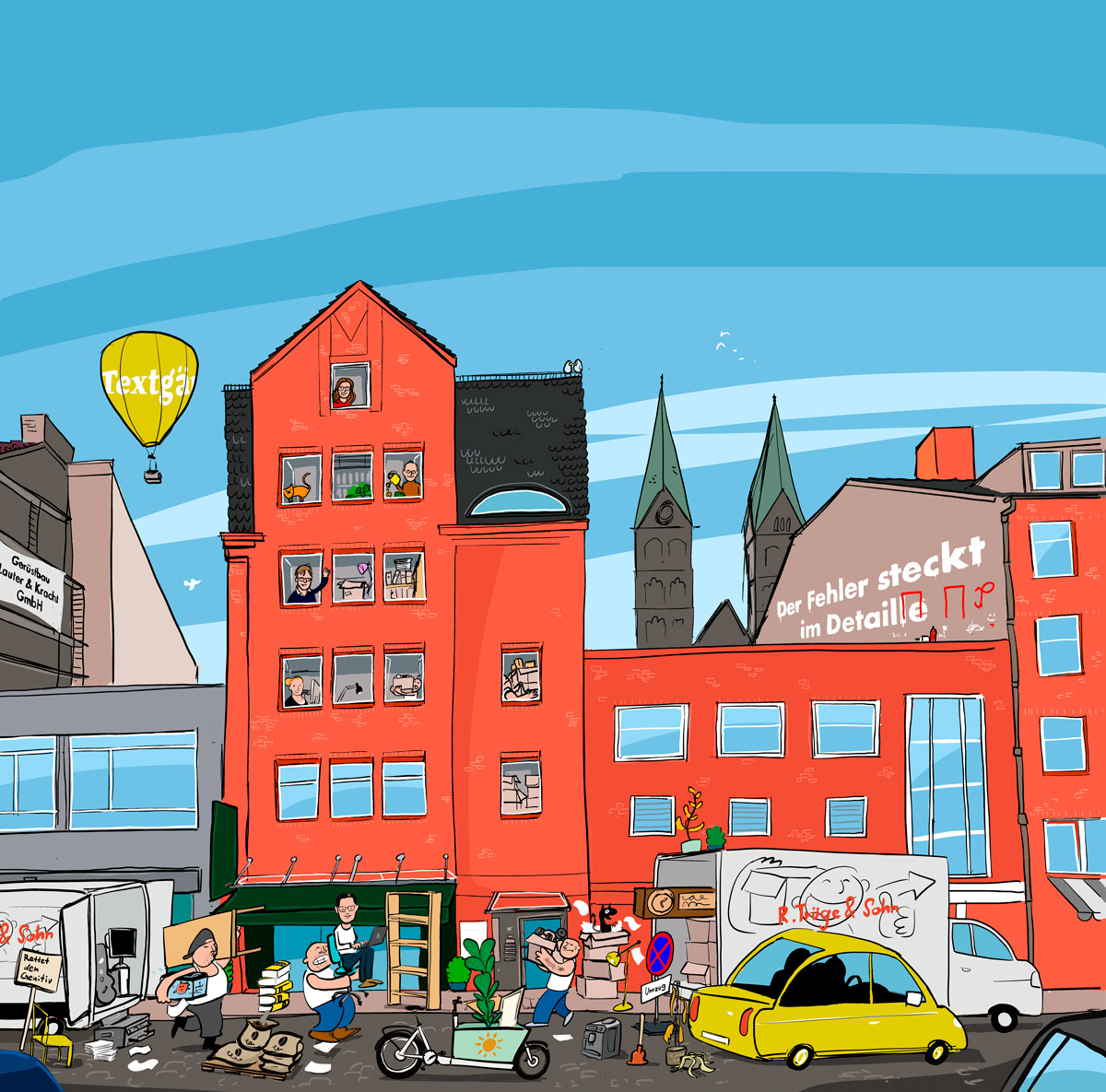 Wimmelbilder sind detailreiche Illustrationen, die zum Entdecken und Staunen einladen. Sie erzählen Geschichten auf kleinstem Raum, zeigen viele Figuren, Szenen und Aktionen gleichzeitig und fördern spielerisch die Beobachtungsgabe sowie die Aufmerksamkeit. Wimmelbilder verbinden Spaß mit Lernwert und machen komplexe Zusammenhänge auf anschauliche und unterhaltsame Weise erlebbar. Dieses Bild habe ich für die Sprach- und Textexperten von der Textgärtnerei gestaltet.