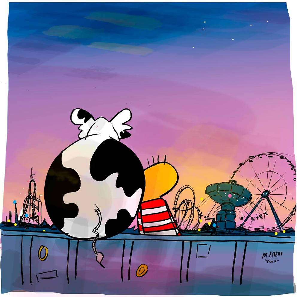 Seit über 30 Jahren zeichne ich jedes Jahr Cartoons für die Oldenburgische Volkszeitung zum Stoppelmarkt in Vechta. Die beliebten Aufkleber und Cartoons mit Börni und seinen Freunden sind längst zu einem festen Bestandteil des Stoppelmarkts geworden – darauf bin ich sehr stolz und freue mich schon auf die nächsten 30 Jahre mit Börni.