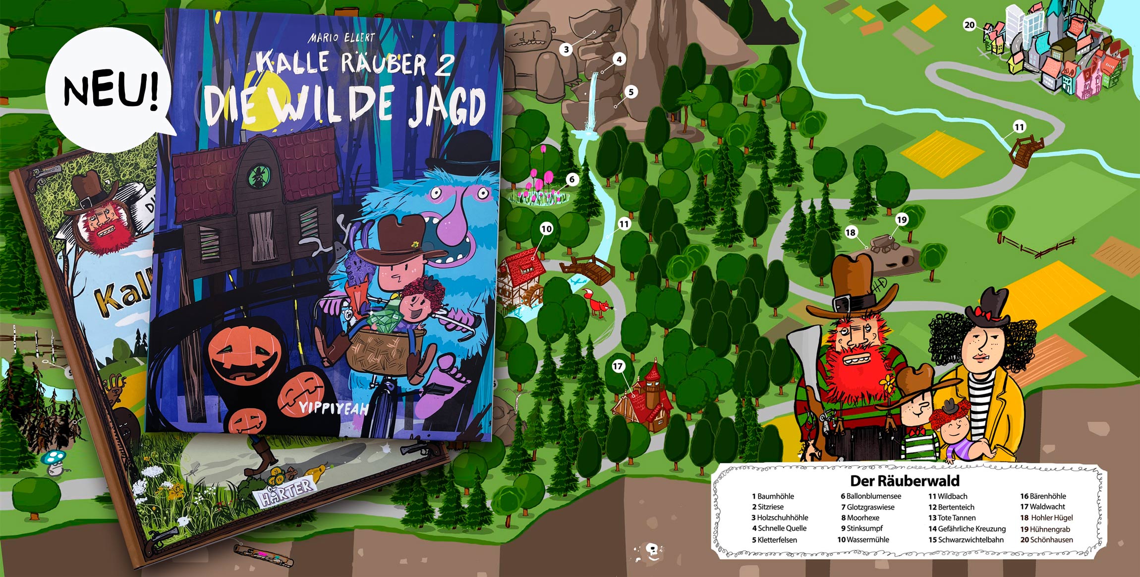 Besonders gerne entwickle und zeichne ich Geschichten aus dem Räuberwald – einer Welt, in der unzählige Wesen und Gestalten leben. Hier lebt auch Kalle Räuber mit seiner Familie. Inzwischen sind daraus zwei Kinderbücher entstanden, die Ihr hier erwerben könnt.