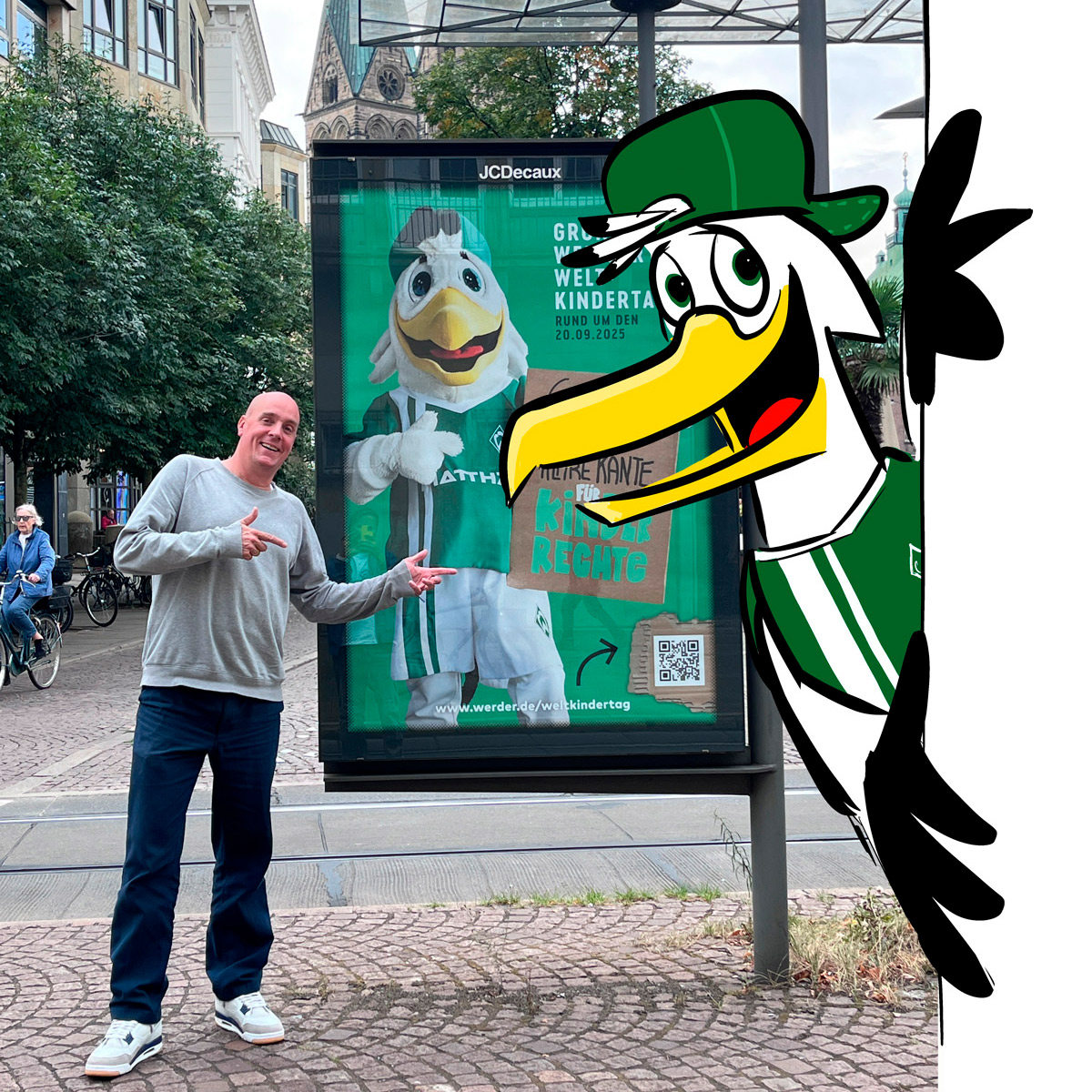 Für Werder Bremen entwickelte ich die Möwe Toni. Gemeinsam mit dem Kostümbauer Tom Haas und der Agentur Team Nawrot entstand aus vielen hundert Zeichnungen die Figur, die seit 2024 das Team und den Werder Kidsclub begleitet. Die Entwicklung einer funktionierenden Walk-Act-Puppe aus einem Cartoon ist eine spannende Herausforderung, bei der es einige spezielle Dinge zu beachten gilt. Gerne lasse ich Euch an meiner Erfahrung teilhaben, um mit Euch Euren Charakter zu gestalten.